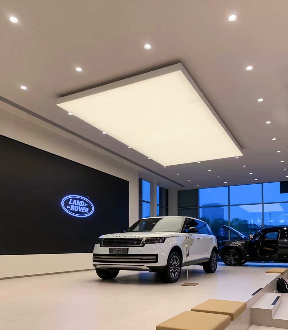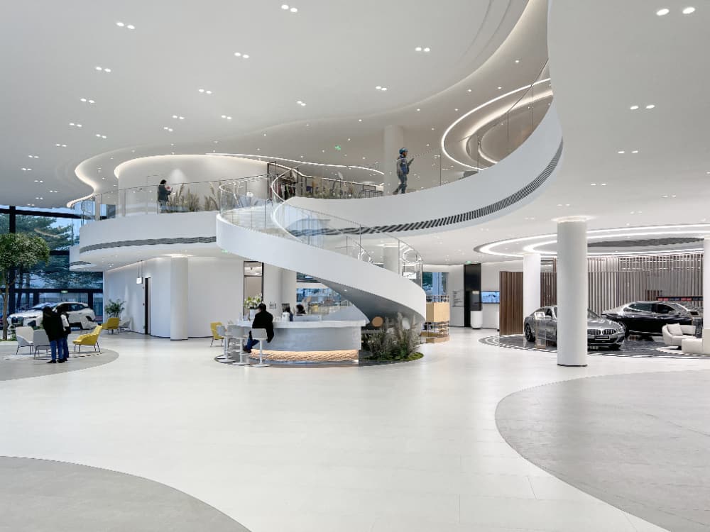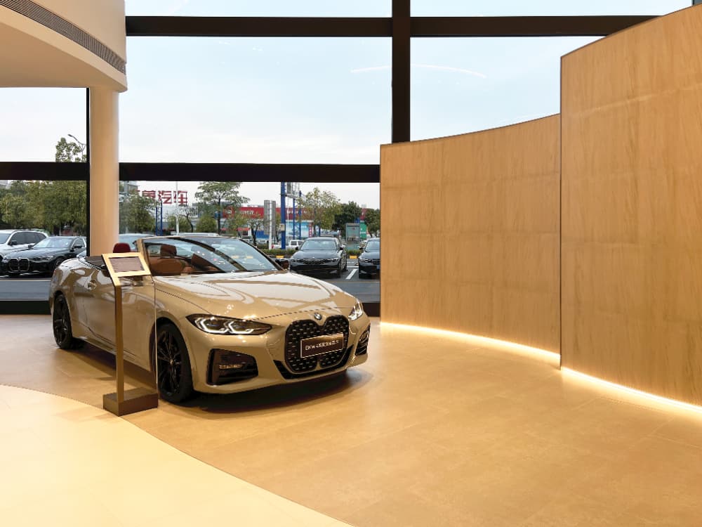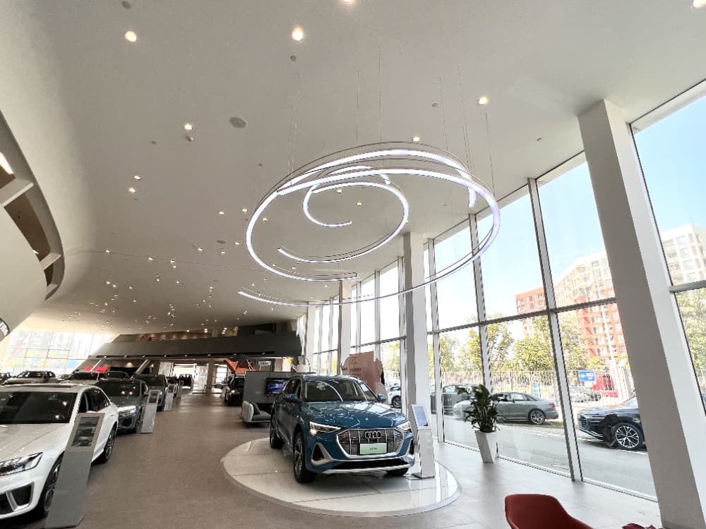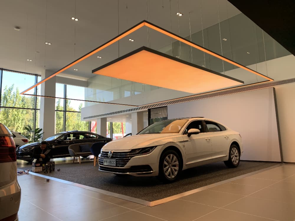 巧妙地运用单色温灯带,不仅以其独特的设计引人注目,还能通过精准的灯光控制和渐变效果展现出多元化的色彩和光影变化,从而展现出宝马品牌一贯的时尚、豪华的形象,为顾客打造了一个华丽而优雅的购车环境,顾客将更好地领略到宝马无与伦比的驾驶体验以及与众不同的品牌魅力。