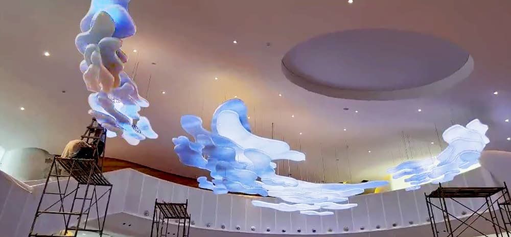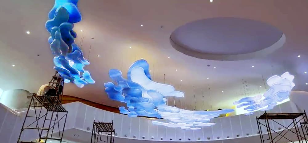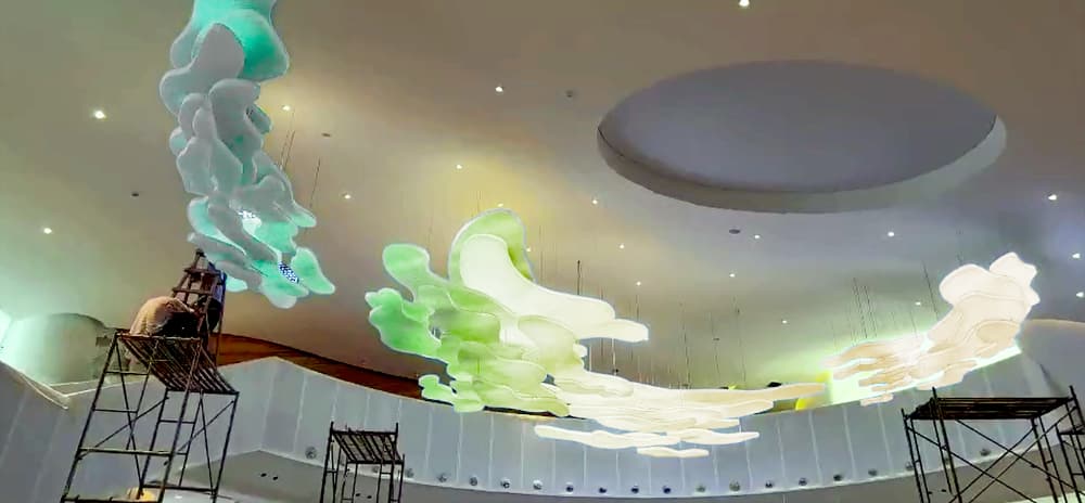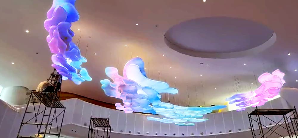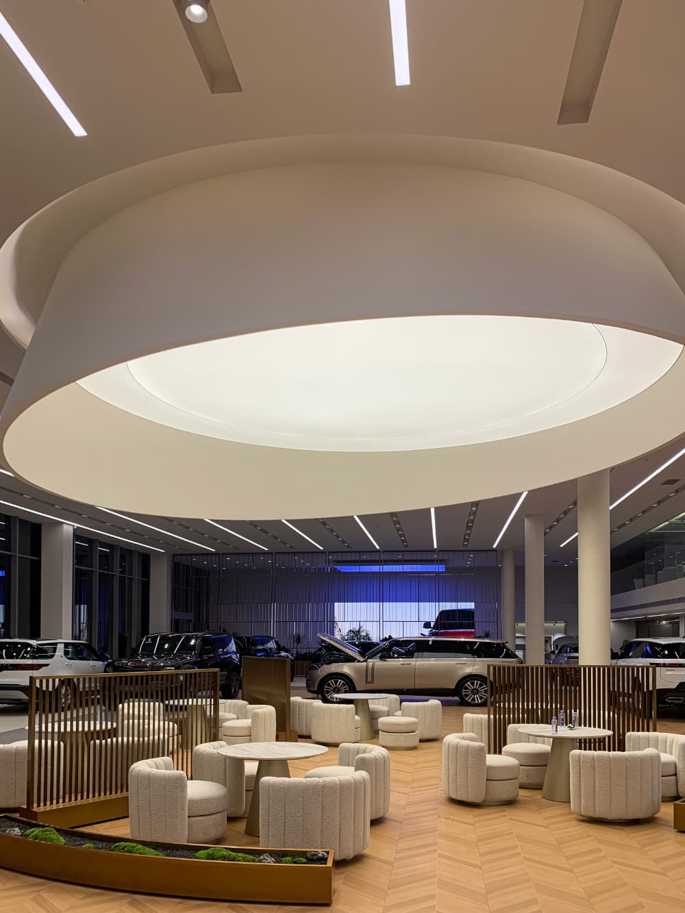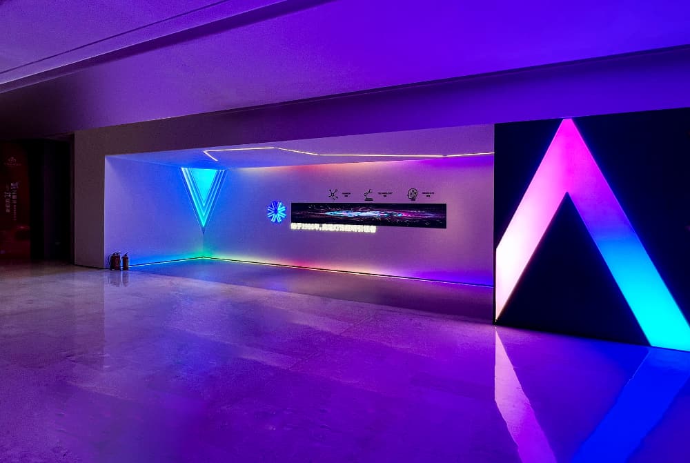 巧妙地运用单色温灯带,不仅以其独特的设计引人注目,还能通过精准的灯光控制和渐变效果展现出多元化的色彩和光影变化,从而展现出宝马品牌一贯的时尚、豪华的形象,为顾客打造了一个华丽而优雅的购车环境,顾客将更好地领略到宝马无与伦比的驾驶体验以及与众不同的品牌魅力。